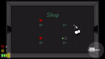 As part of the "NPC by OP Games" challenge, this game features an NPC known as "Room Service" that gives the player the initial mission and can be summoned to help in combat. This NPC also has a twist however, as if the player does not tip the room service enough (enough being 2 coins for each time he is summoned), by the end of the game, the NPC changes allegiances and assists the enemies instead during the final boss fight.