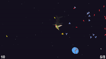 The theme for "Bullet Hell Jam 5" was "Consequences". The game fits this theme as majority of the enemies and projectiles appear as a consequence of the players actions. Examples of this include the enemies that spawn and chase you after you attack their planet, and the debris from the explosions of the planets the player destroys. The gameplay works on the idea: actions that negatively affect others greatly, even those done in self preservation, can often have consequences.